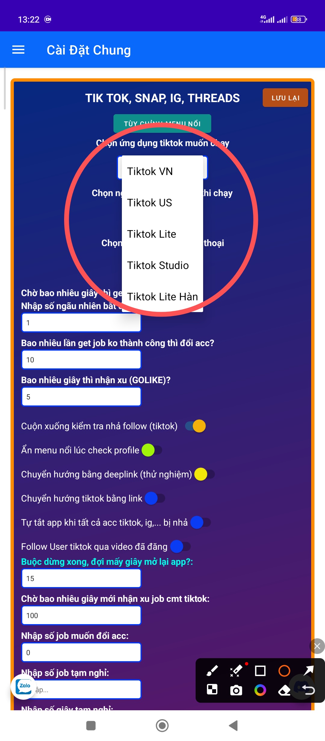 Cách chọn bản tiktok trước khi chạy chạy tool