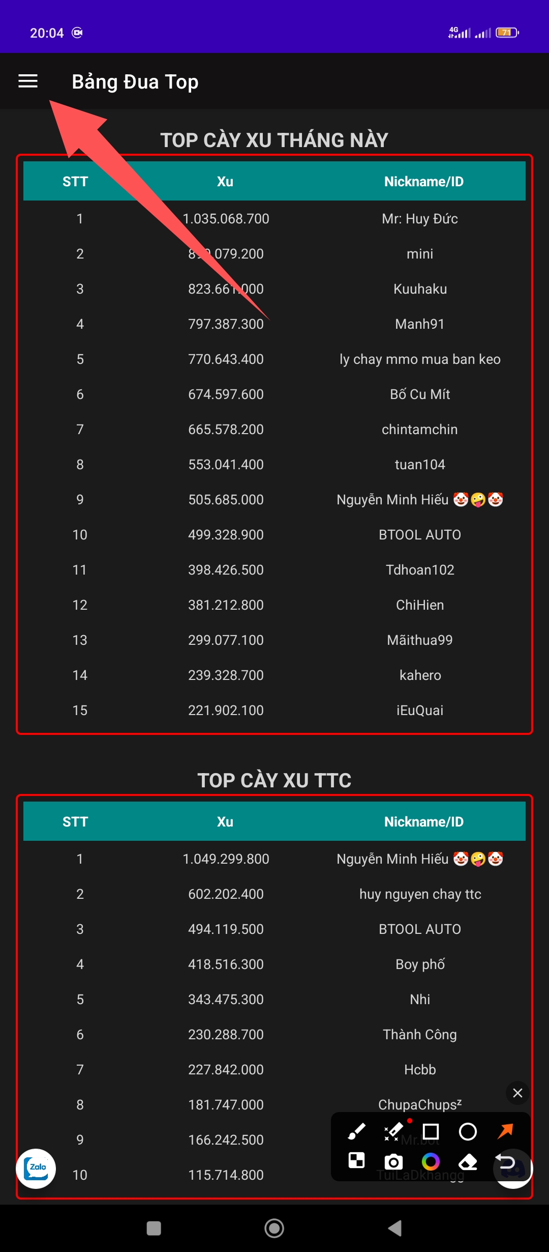 Buớc 1: ấn vào thanh menu.